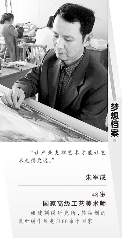 当朱军成来到研究所拜师时,几位教师很吃惊:“你一个男人学刺绣做什么?能绣得好吗?”