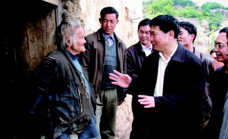 图为2005年,刘子富再次走进赫章县海雀村,与苗族老人安美珍亲切交谈。本报记者 宫喜祥 干江东