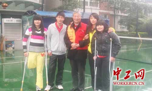 叶树元与地震灾区残疾孩子在一起