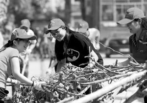 市城管委的党员志愿者到社区清扫垃圾。本报记者 张晓峰 摄