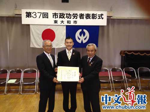 据日本《中文导报》报道,在日华人付鸿飞去年12月在东大和市车站奋不顾身救助落轨者,他济危扶难的义举获得日本社会的赞许,留给了民众久久的感动。10月4日,东大和市向付鸿飞颁发了年度市政功劳奖,对他的行为表示敬意。