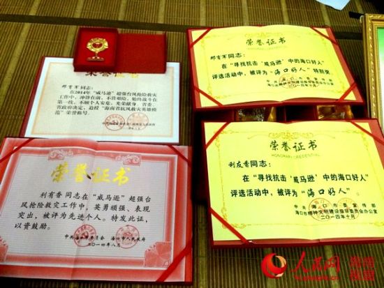 海口市琼山区环卫局司机邓育军在台风抢险期间因公殉职后,留下一个贫困的家庭和老少6口人。然而为了完成丈夫遗愿,每月仅有1400工资的妻子先向风灾灾区捐款500元,后又把2万元善款捐出。2014年8月,邓育军荣登“中国好人榜”。10月9日,邓育军获“海口好人特别奖”、遗孀利有香获“海口好人”。“平民英雄”的事迹感动着所有人,他的家人也受到来自社会各界的关爱。