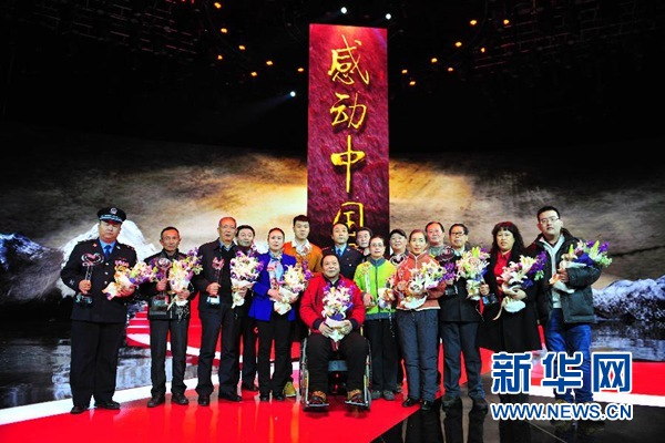 2月27日,“感动中国2014年度人物评选”结果揭晓,中央电视台综合频道播出了颁奖盛典。这是获奖嘉宾代表合影。 新华社发