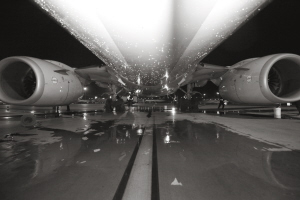 即使是最脏最难清洗的飞机腹部,在清洗工作完成后,挂上了干净的水珠,也会显得闪闪发光。