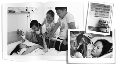 图① 同学们到医院探望周美玲。图② 周美玲在病床上阅读励志书籍。 图③ 周美玲家中的墙壁上挂满她的奖状。(资料图片)