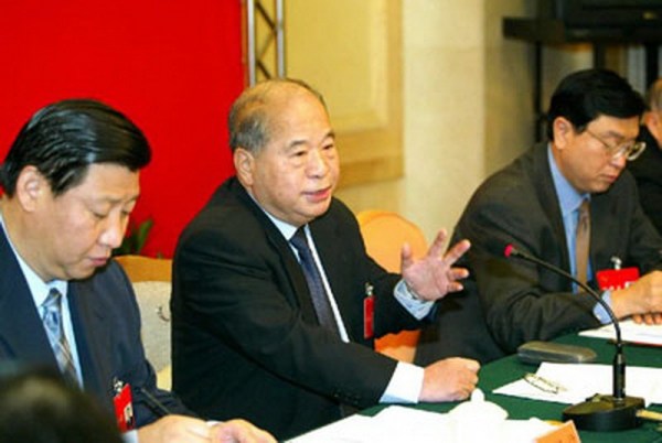 2002年11月10日,尉健行同志参加十六大浙江代表团讨论并作了发言。新华社记者樊如钧摄