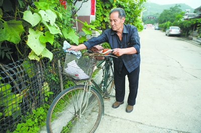 老杨叫杨明纪,今年已年过七旬,他不是邮递员,却已为村民义务送报送信四十余年。