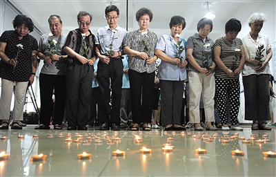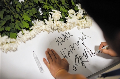 白菊、蜡烛,人们鞠躬默哀,狭小的空间上百人鱼贯而入,鱼贯而出,不发一言,只留下眼泪和想念。