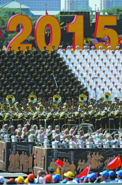 ▶抗战支前模范乘车方队。 新华社记者 刘潇摄