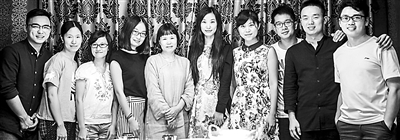 胡晓云努力引导研究生走向与农业品牌研究、实践相关的领域。图为2015年教师节,胡晓云(左五)与研究生们合影。