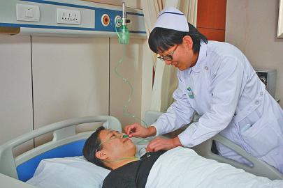 张利华正在为患者提供护理服务。(杨晨 孟宇 摄)