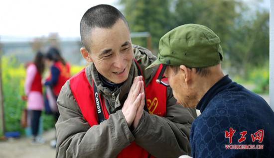 这份承诺没有因为身患癌症而改变。今年春节前后,李鸿生在洛社镇幸福义工志愿服务团负责人老徐的陪同下,两次带着幸福义工,装上大米、食用油、衣服、年货等慰问品,驱车前往麻风村看望老朋友,为老人们按摩、打扫卫生、贴春联、包饺子。或许,一份大爱的力量就是这样神奇,会让做梦没有想到的事儿变成真的。如今,李鸿生的生命已超越了医生当初预估的六倍多,而且检测结果显示,他的病情也正在逐步好转。“众人拾柴火焰高,我现在只是一名癌症晚期病人,自己的力量毕竟有限。但是,只要我活在这个世上,就会继续去做力所能及的公益事业。”在陪病友“话聊”时,李鸿生微笑着说。(文 姚起亚 徐长波 徐竞峰 摄)
