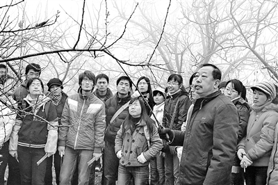 李保国(前)带领学生实习(2009年11月29日摄)