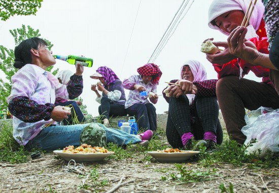 雇主只提供了简单午饭,女工们自备啤酒,喝点缓解疲劳。