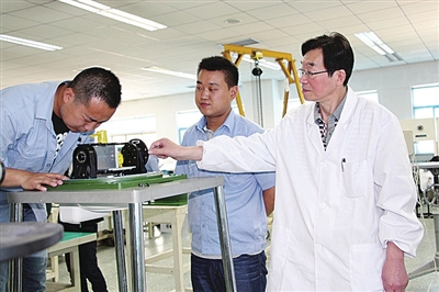 穿着白大褂的姜峰正在指导技能操作人员解决某产品机构空回偏差问题,“这个工装与机构框架配合公差太小,你需要再进行打磨,注意,一点点……”姜大师说着用手指比划了一下。