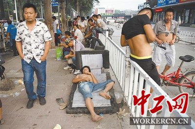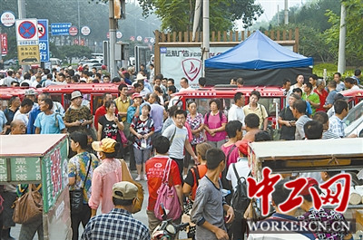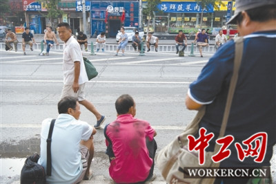 8月11日早上,马路劳务市场不断增加的人流已经挤满了马路。