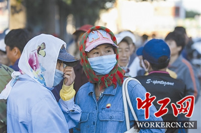 图左:在这个劳务市场也聚集了不少女工,她们日工资在100元左右。