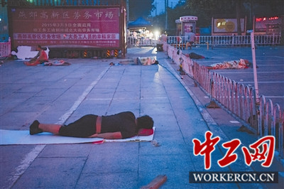 2015年9月12日上午,听说附近的一家人才市场正在开招聘会,訾勇便单独来到现场想碰碰运气,但是由于他学历较低,这儿几乎没有合适的工作。