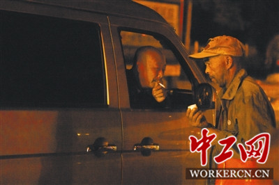 2015年9月12日凌晨5时左右,一位三天已经没有找到工作的老年农民工正在跟雇主讨价。