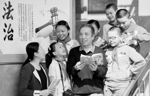 图二:在孝道课堂里,小学生们听志愿者讲孝道故事。
