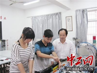 或许是男孩子生性就有一种探索精神。朱照红在就读南京农业专科学校时选择了机电一体化专业。学习中他发现,和书本上的知识比起来,实践动手操作更有趣味。毕业后,他进入省靖中专当老师,也将大学里这份动手实践的精神带进了课堂。当时学校的家电维修课教学,主要通过课本中描述的分解步骤,学生接受起来也比较困难。朱照红便把电饭锅、微波炉等小家电带到课堂中,现场拆解,让同学们直观地了解其内部构造和原理。在教书育人中,朱照红还不断提高自己,获得了硕士学位,并取得了高级技师证。2007年,省靖中专成立了创新办,朱照红担任负责人。