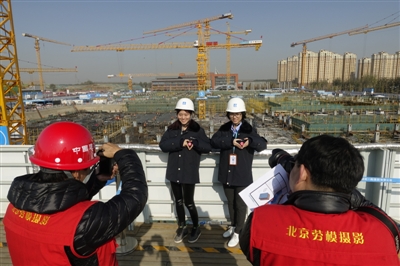 中工网讯 11月15日,“把微笑带回家,为最美劳动者点赞——2017年关爱外来务工人员”大型公益活动走进中建一局城市副中心项目,全国先进工作者张惠领、北京市劳模吴金秀和本报摄影志愿者一起 ,为一线劳动者拍摄笑脸照。