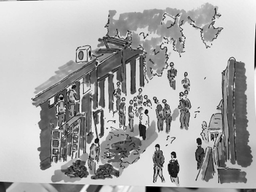 李劲松警官用手绘的方式记录下环境整治工作值得留住的瞬间。 于丽爽摄