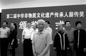 王中堂以东北二人转业界唯一代表的身份获得了“第二届中华非物质文化遗产传承人薪传奖”,领奖现场。(图片由徐振泽提供)