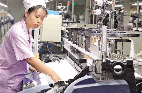 忙碌在生产一线的党的十九大代表、河北石家庄常山纺织股份有限公司恒盛分公司操作技术员杨普。 赵永辉摄