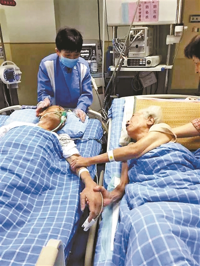 一张宁波90多岁的老两口在病床上手牵手告别的图片在网上热传