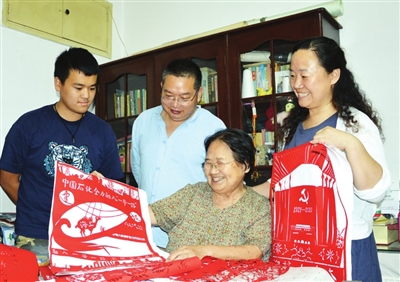 走进张培华的家,满屋都是她的剪纸作品。剪纸这门古老的中华艺术瑰宝,在这个家庭里得到了传承和发扬。屋子里洋溢着浓厚的民族艺术气息。老艺术家评价为:“剪刀出风情,薄纸绘春秋,传承民族魂,远播五大洲”。采访中记者了解到,创作主题剪纸,需要有统一的构思和设计,而这个重任由张培华老人承担,对此,她不仅要提前为团队设计剪纸图案,还要亲自动手制作,工作量之大可想而知,有时甚至要工作到深夜。