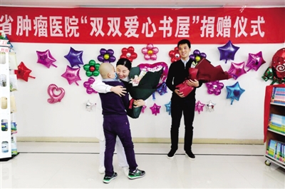 昨日上午,在河南省肿瘤医院10号楼12层阳光房,“双双爱心书屋”成立和捐赠仪式举行。书屋配备各类图书200余册,某爱心企业也捐赠移动图书车一辆,提供全新少年儿童图书200册。