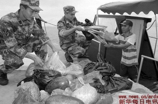 ▲梁彩雄为岛上官兵运送新鲜蔬菜。 图片来源于网络