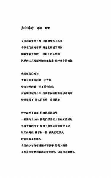 作为土生土长的北京人,骨子里会有一点点散漫和慵懒,但这不妨碍赵雷孤在20岁的时候背起行囊,开始了横穿中国的“流浪”。赵雷不觉得自己横穿中国是为了创作采风,他只是觉得既然在北京一样“过得苦”,那不如出去走走,看看外面的世界,认识更多的朋友。“每个朋友就像一本书。”他自己总结到。在“流浪”的路上,赵雷认识了很多人,“读”了很多“书”,拉萨浮游酒吧的老板彬子就教会了赵雷很多东西。赵雷自己说,这些人、这些经历帮助他在人生路上的转折点顺利“拐弯”。