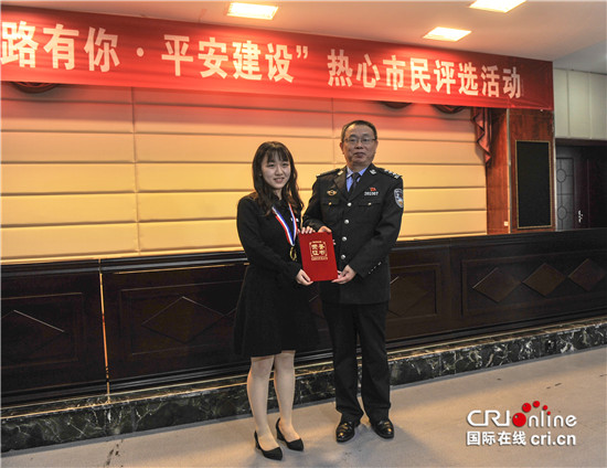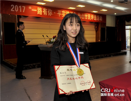 国际在线重庆频道报道(高爽):11月1日,重庆“一路有你·平安建设”热心市民组委会正式授予魏涵睿月度热心市民称号。颁奖仪式在重庆师范大学涉外商贸学院举行,市慈善总会、市公安局、合川区相关部门,以及热心平安建设的企业负责人和群众代表参加颁奖仪式。