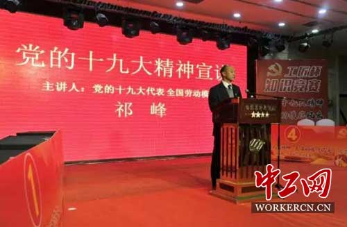 中工网讯 11月1日下午,张家口市总工会邀请到党的十九大代表、全国劳动模范、张家口煤矿机械有限责任公司职工祁峰进行党的十九大精神宣讲。来自全市各行各业的各级模范代表150余人聆听了报告。
