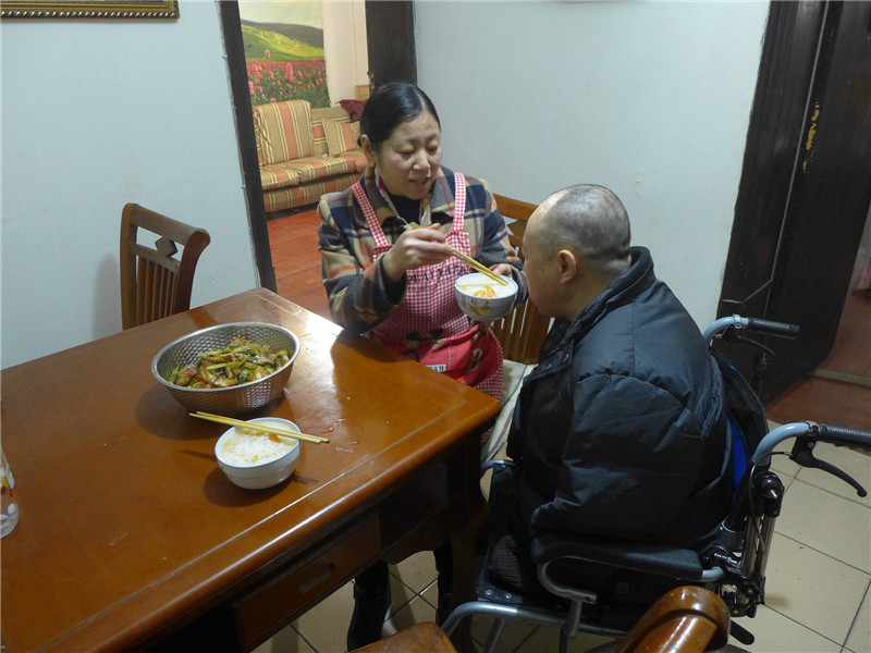 王成平喂瘫夫吃饭