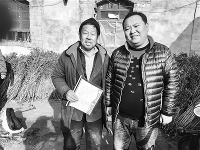 张洪涛(右)生前与任毛庄村贫困户在一起。枣强县委宣传部供图