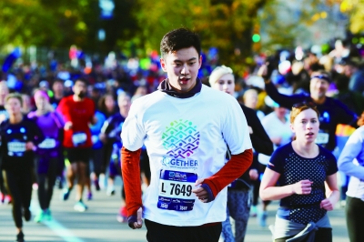 11月4日,宁泽涛在活动中。当日,中国游泳运动员宁泽涛作为联合国合作伙伴和可持续发展目标倡导者,受邀参加一年一度纽约“冲向终点”5公里公路长跑。