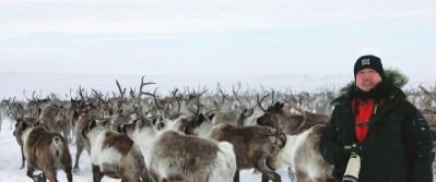 在加拿大麦肯锡三角洲,王建男与驯鹿群在一起。(照片均受访者本人提供)
