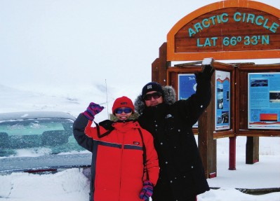 驾车跨越北极圈后,王建男与妻子吕晓琦合影。