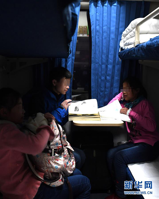 “是爱和包容让孩子们从最初的孤独、封闭,变成现在的乐观、自信。”“艾滋孤儿”的“妈妈”——协会负责人张颖说,10多年来,社会各界给了5名孩子很多关爱,为孩子们创造了一个快乐的成长环境。图为孩子们在阜阳开往北京的列车上学习,他们受邀到北京参加艾滋病日宣传活动(11月26日摄)。 新华社记者 刘军喜 摄 图片来源:新华网