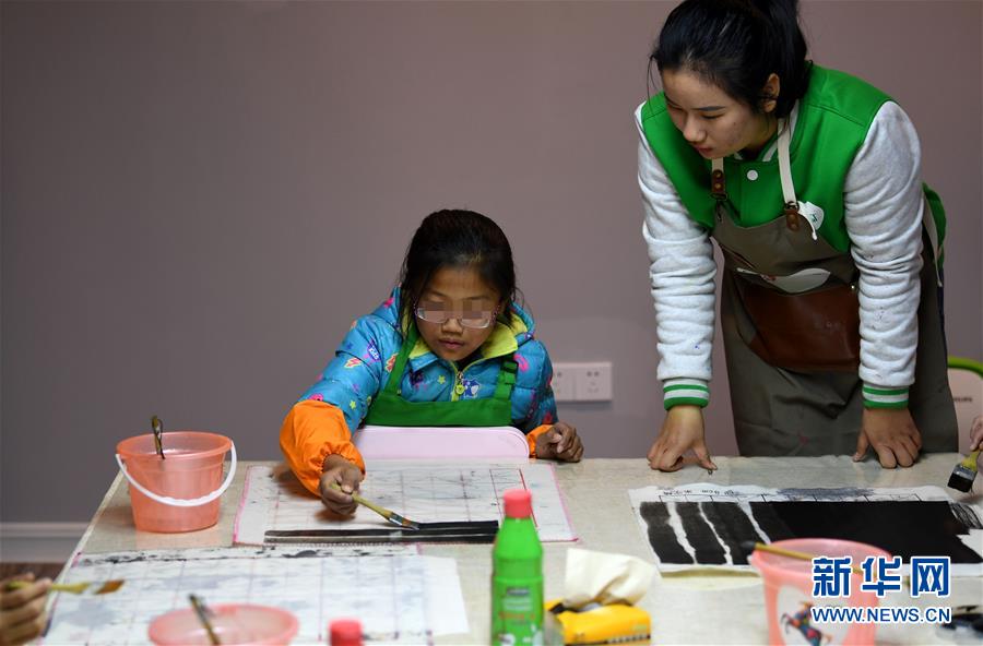珍珍(左)在培训机构学习画画(11月26日摄)。 新华社记者 刘军喜 摄 图片来源:新华网