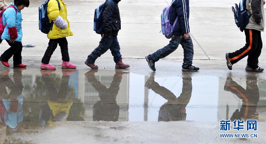 5名孩子走在上学的路上(2011年11月30日摄)。 新华社记者 刘军喜 摄 图片来源:新华网
