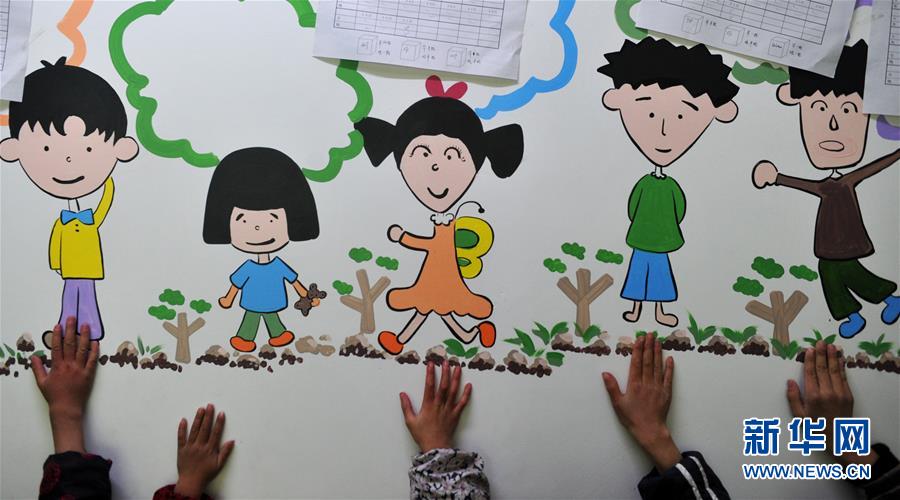 5名孩子在触摸属于各自的卡通人物,这5个卡通人物由协会老师根据5名孩子的特征而绘制(2011年11月30日摄)。 新华社记者 刘军喜 摄 图片来源:新华网