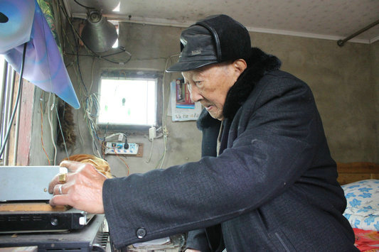 当时间接近十点,胡绍贵在老伴的搀扶下,来到广播室,播放广播。胡绍贵老人熟练地打开开关,一首悦耳的民歌在田野间回荡,宁静的山村顿时热闹起来,村民们知道广播开始了。