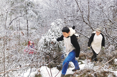 韦华(右)和同伴前往大熊猫野化训练场(资料照片)。新华社发(中国大熊猫保护研究中心提供)
