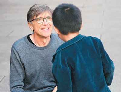 图为克里斯·马吉与南京大屠杀幸存者夏淑琴的曾外孙友好互动。图片来源:新华网