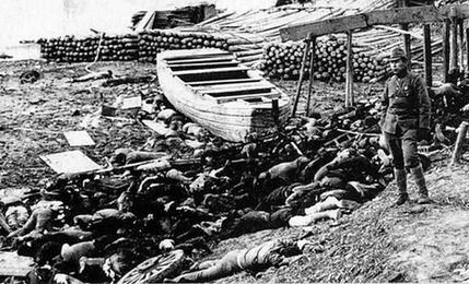 图为日军杀害中国人之后,又放上木柴,浇上汽油,纵火焚烧尸体。
