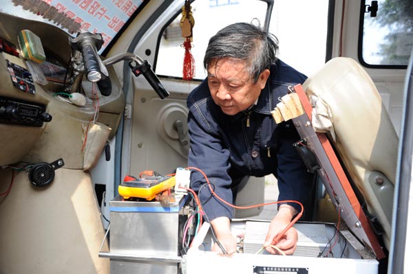 自2006年开始,他开始苦心研制太阳能电动老年休闲观光车。2007年,第一代太阳能电动老年休闲观光车亮相戎城街头, 成为宜宾街头一道亮丽的风景线。该太阳能电动老年休闲观光车是综合运用电工学、光学、声学、美学,在普通电动三轮车上,加装了能拆卸的不锈钢顶棚,并在顶棚上安置了太阳能电池板,使之不断地为电动车的电瓶充电。